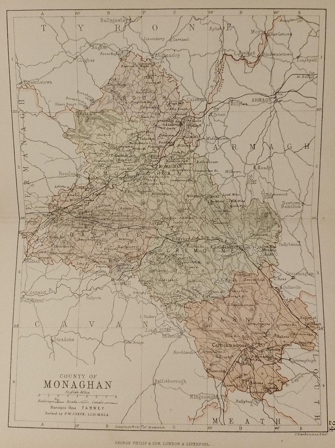 It was printed in 1881 by George Philips in London with the map constructed by John Bartholomew and edited by P. W. Joyce.